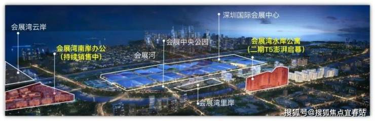 深圳会展湾定位“创新型会展产业综合体”,以超300万㎡总体量,集合约160万㎡国际会展中心及约154万㎡包括国际体验式商业中心、星级酒店群、高端公寓群、会展商务基地、会展公园、会展河等复合功能业态会展综合配套。