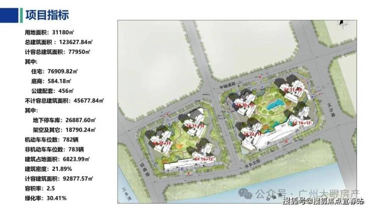 项目分为2个组团共7栋住宅,2个小地块,围合式布局,容积率仅2.5为全岛最低,绿地率达30%,地下车位705个,地面车位77个