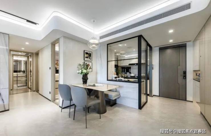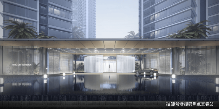 首先是“颜值社交”,奢华酒店式的社区大门,气场全开。无雨落客区能容纳6辆车同时落客,前庭环形艺术回廊利用超高颜值的玻璃砖打造出“水晶宫”。