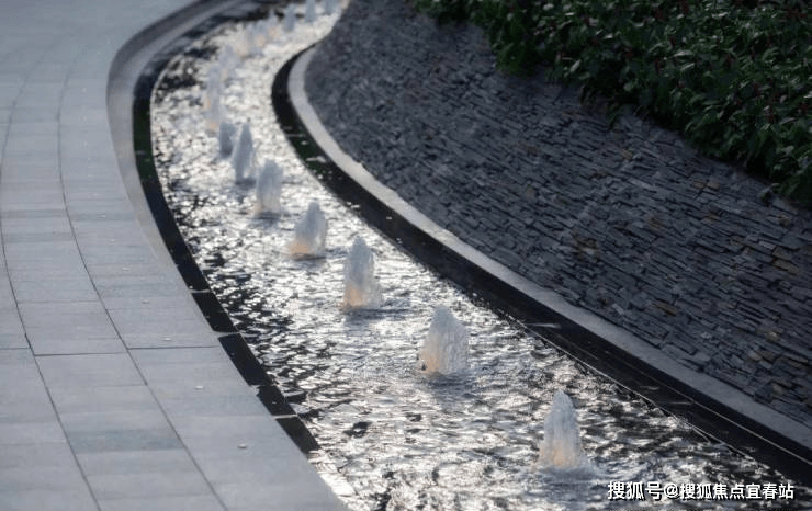 海浪千层被抽象成层层叠岩,写意的浪与真实的水共同演绎着属于海的那一份浪漫与惬意,水曲与直的呈现也讲述着另一个相遇的故事。