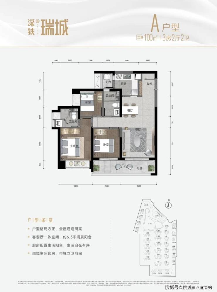 面积:96-100㎡三房两