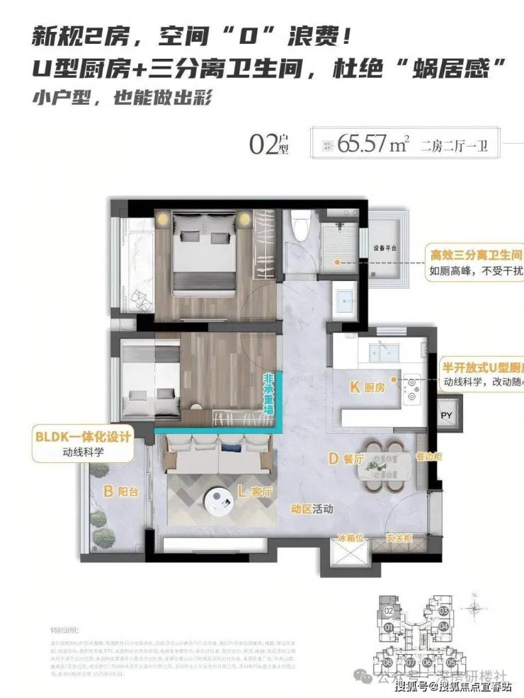 建面约65㎡的两房两厅一卫,共计4款户型,属于南山极度稀缺的产品。