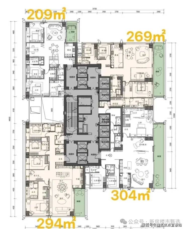 · 269-294㎡户型: 通常是四房以上大户型,注重家庭互动空间与个人私密空间的结合。