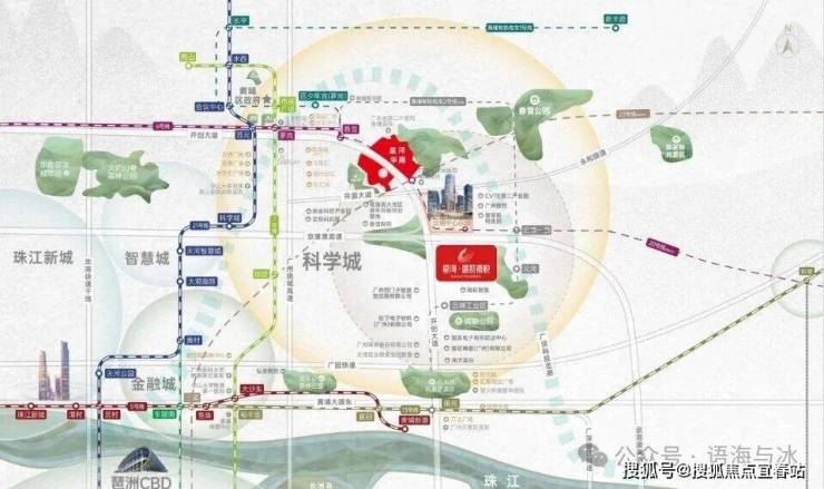 ●开创大道是科学城最光鲜的门面担当,作为“总部经济带”,聚集了南方电网、创维、日立IT等二十多个企业总部,它的重要地位,类似于广州新中轴,串起了科学城的过去、现在和未来