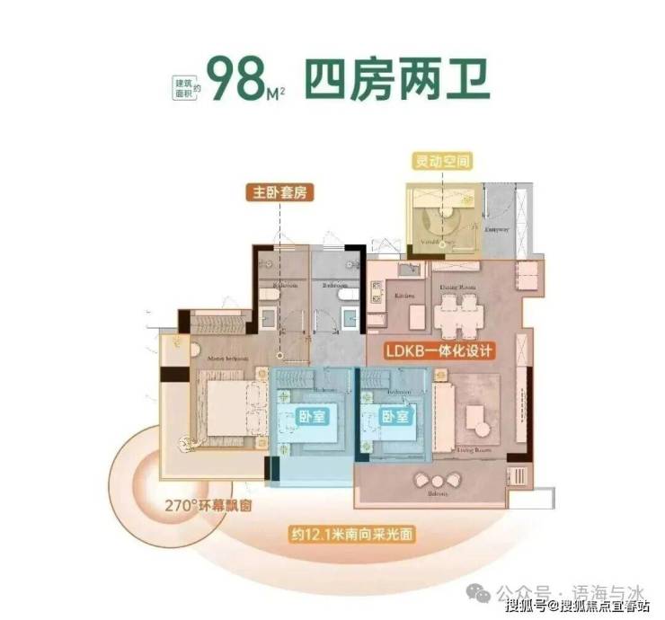 而且,它的主卧还配置了270°环幕飘窗,带来了最大化的采光面及观景视野。