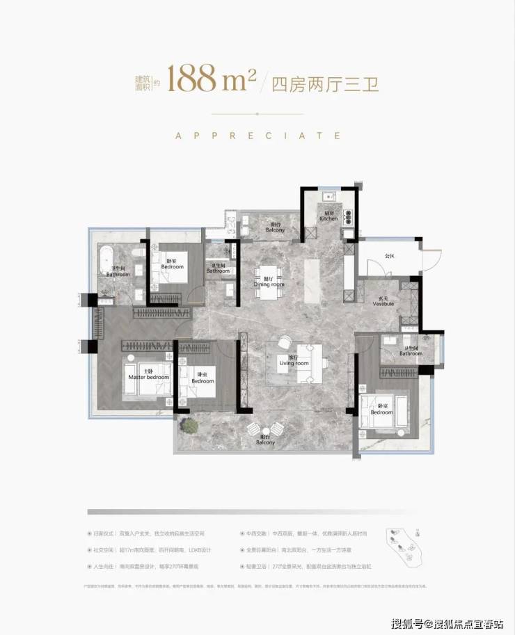 建面约103-188㎡南向阔景四房