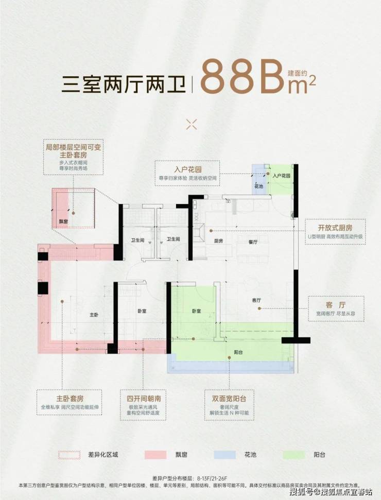 建面约77-135㎡三四房,四面宽南向,三房(最高)享约5米客厅,新规产品约127-137%高使用率,(但实际看了,感觉并没有宣传的那么高使用率)同面积不同户型,贴心打造多种人居空间。