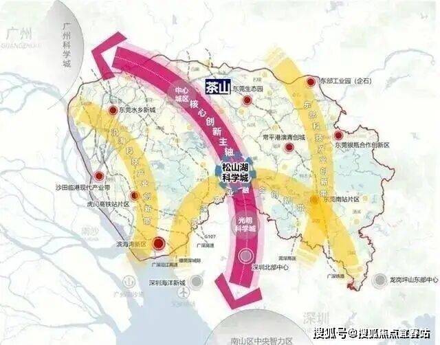 茶山隶属松山湖片区,无缝连接东城,承接中心城区与松山湖两大发展极的人口、产业外溢,同时享受核心创新主轴的规划利好。