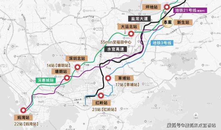 1城际:21号线2站龙城站无缝换乘深惠城际(建设中),可1站大运中心、5站深圳北站、6站西丽枢纽、9站直抵前海,快速通达全市;