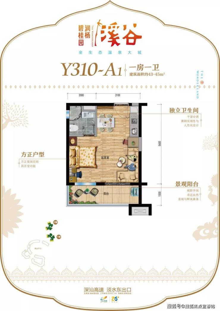 润杨溪谷占地近3000亩,享有罕见的天然偏硅酸温泉和水杉湿地,背靠的金桔自然保护区内集合了山、林、溪、谷、河、瀑布等自然资源,逾千种珍稀动植物栖息于此,名副其实“全生态温泉大城”。项目占地近三千亩,建筑面积220万㎡,首期容积率:1.18,绿化率:33.80%。分多期开发,产品类型涵盖住宅、别墅、公寓、商铺,总房源7418套。社区内配有碧桂园集团首家东南亚风情特色温泉酒店,目前已在运营当中,酒店中心园林近千平无边际泳池、五大功能温泉泡池区、造浪池、儿童游乐池等游乐设施;此外,社区内规划有东南亚风情商业街、千人宴会中心、水杉湿地公园、山体公园、风情商业街、18班幼儿园等城市级配套。
