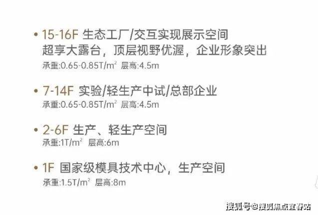 单位载重:首层1.5T/㎡,2-16层载重约0.65-1T/㎡