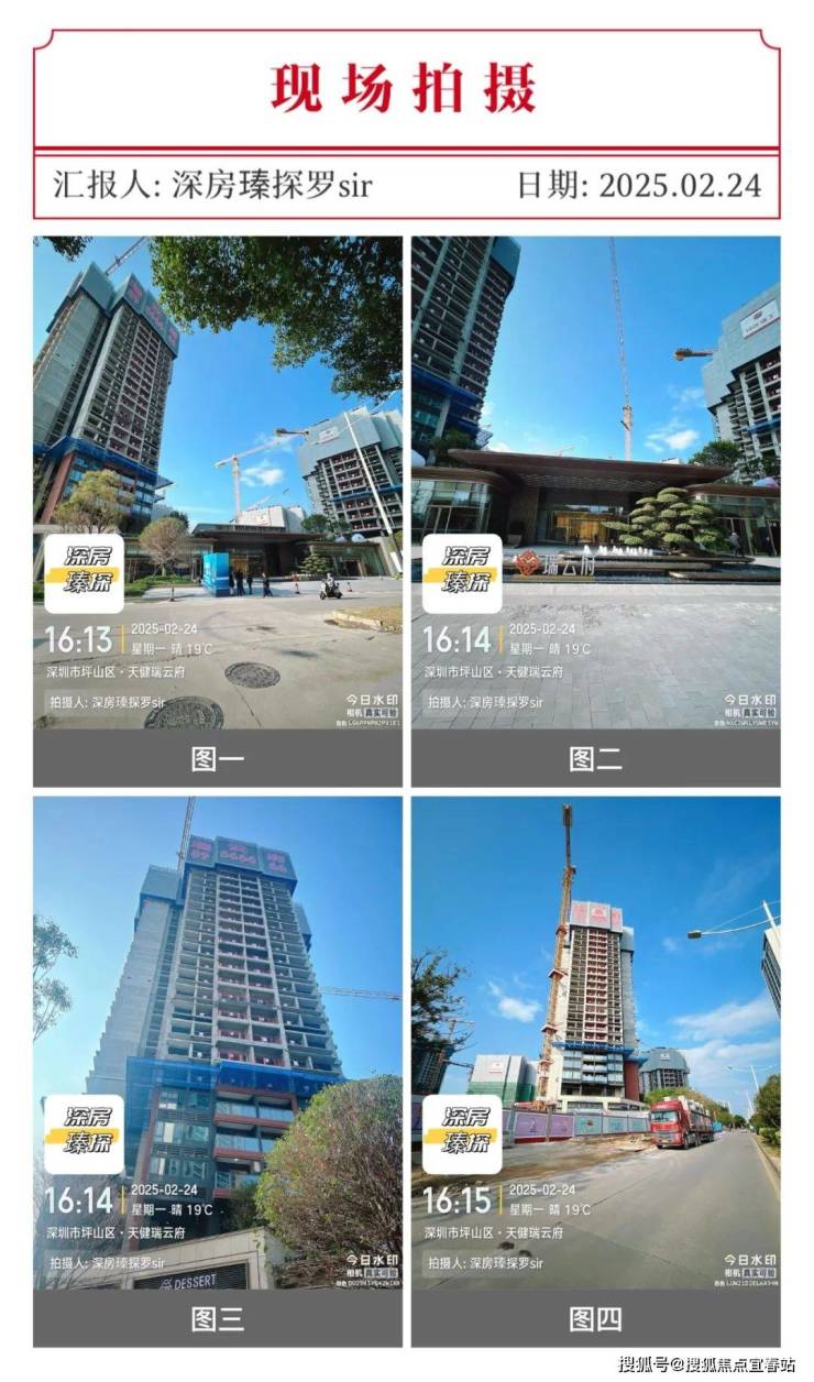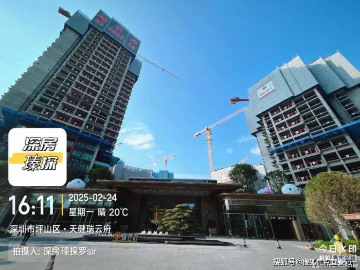罗sir在2025年2月24日有前往实地探盘,天健瑞云府3个地块都有在动工,首推的2栋1单元已经出地面20多层,小区大门都已经做好,非常大气,其它栋数还在出地面4-12层左右,整体的建设进度还是很快的。