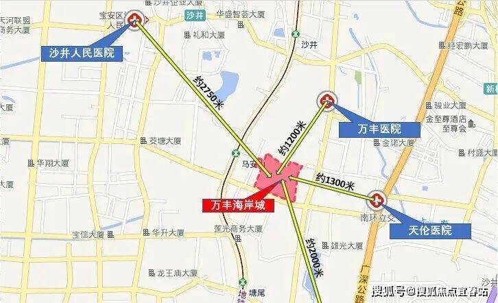 医疗:项目1公里范围内分布有马鞍山社康,万丰社区社康,除此之外距离项目较近的两所医院是万丰医院和深圳天伦医院,日常小的身体不适可就近就医相对便利。离项目最近的大型公立医院是沙井人民医院,距离项目直线距离约2.75公里,距离稍远,缺少一定便利性,医疗借助交通工具通行。