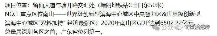中央智力区&世界级创新型滨海中心城区“双料加持” 经济最强区:2020年南山区GDP达到6502.22亿元,总量居深圳各区之首,广东省位列第一。
