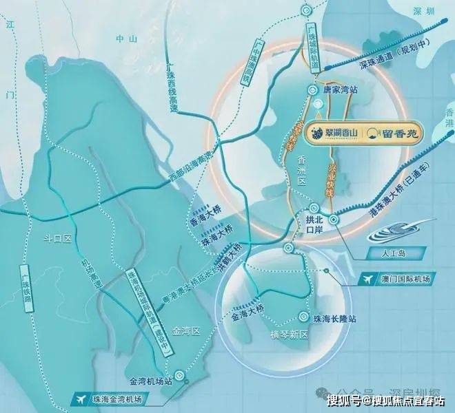 可乘坐10a路, 69路, 70路, 72a路, k3路, 珠海北站专线到达项目。港珠澳大桥,直达港澳。深中通道,约40分钟到达深圳,海上交通30分钟抵达澳门、深圳,1小时到达香港