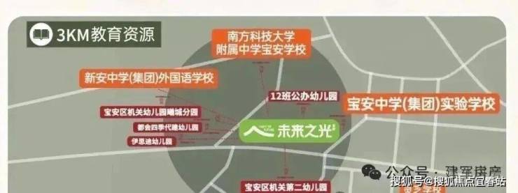 项目内自建幼儿园,3km内南方科技大学附属中学宝安学校(在建中)、宝安中学(集团)实验学校、新安中学(集团)外国语学校、曦城协同学校等学府汇聚