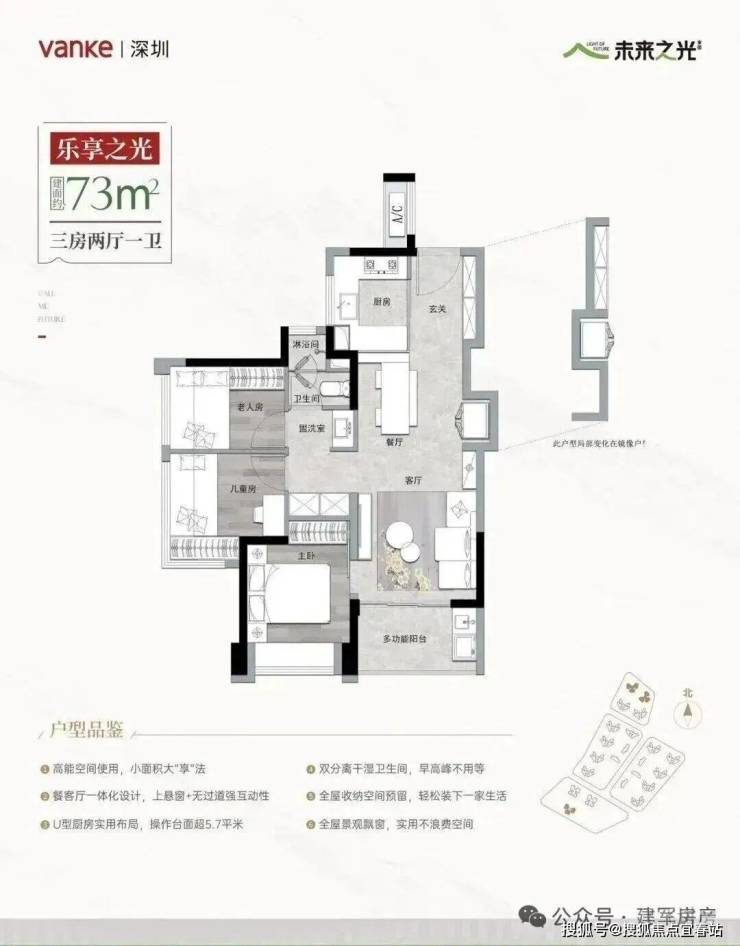 万科未来之光家园,项目共分4个地块开发,占地面积约7.4万㎡,总建筑面积约21.5万㎡,容积率2.91,共由23栋10-23层高住宅组成,配建有1所幼儿园,总规划2466户(商品房1699户,公租房257户,自持租赁住房510户),规划停车位2060个(占比1:0.83)。