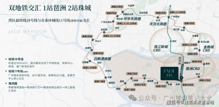 【交通配套】地铁11+18号线双轨交汇枢纽(1站琶洲-2站珠江新城-3站金融城)