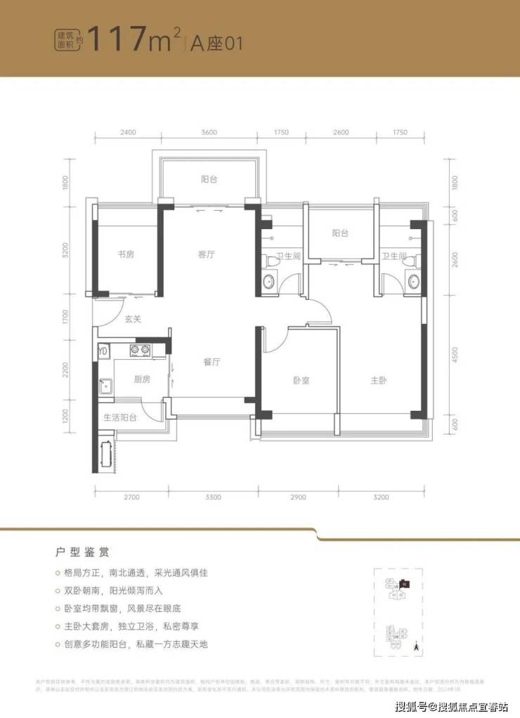 建面约117㎡楼王户型(可售28套),南北通透;中心楼王公园景观,三开间朝南,端头位且独门独户,卧室均带飘窗。