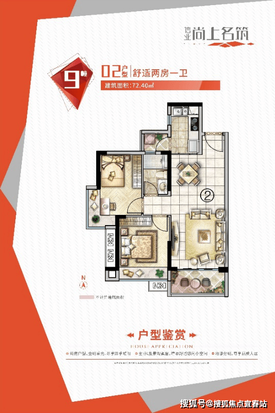 ☆ 72㎡:2房2厅1卫,南向,上车最佳选