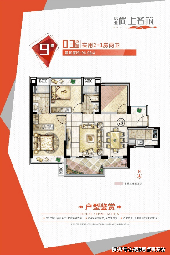 ☆ 98㎡:3房2厅2卫,南向,高使用率