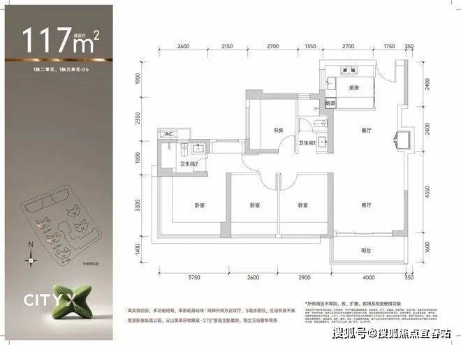 【建筑面积117㎡4房2卫】