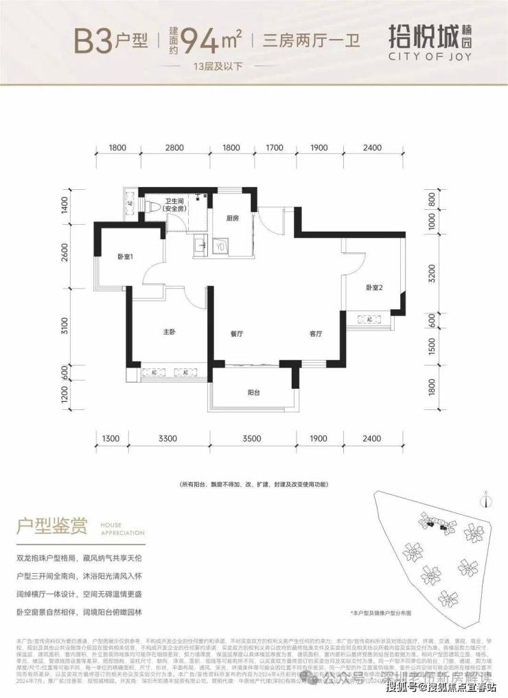 94㎡的3房2厅2卫,折后总价340万,单价3.61万/㎡。