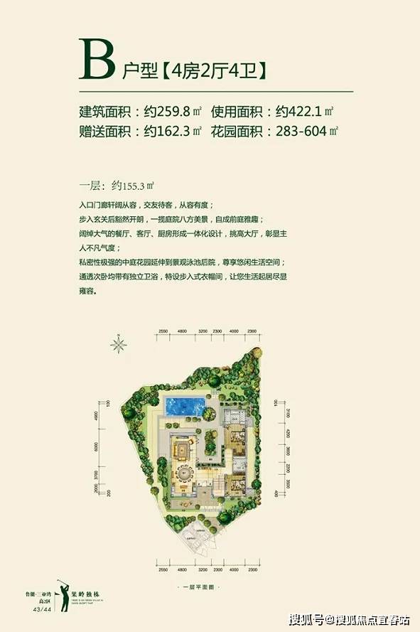 B户型,420平米(配带大私家花园)4F2T4W,总价约1375万~1623万
