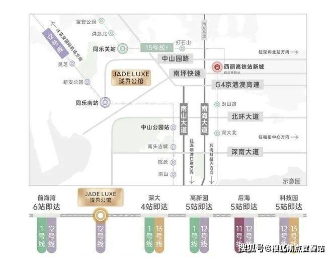 15号线同乐关站(在建中,预计2028年12月开通),串联宝中/前海/深圳湾/西丽,也被称为深圳“一环线”,本项目为环线上的重要一环;
