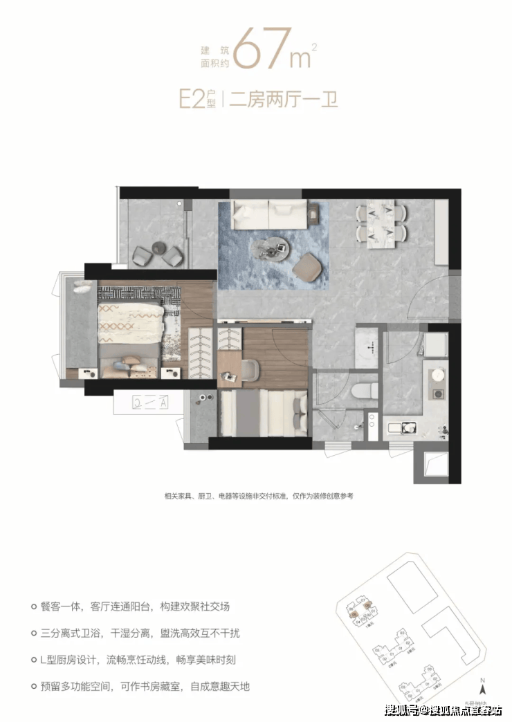 【E2户型67㎡二房两厅一卫】