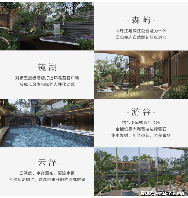 蓝调国际大师主笔,“溯源”广州在地文化,以珠江为源头,溯流而上,从外到内匠心打造:森屿、镜湖、游谷、云泽“四重景观礼序”,塑造优雅归家动线。