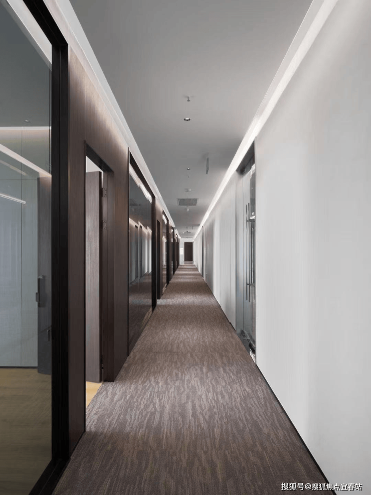 电梯间走道宽3.3m,公共空间过宽道 2m(目前绝大部分写字楼公共走道仅1.8m宽):充分满足人体空间舒适要求,缔造国际化办公体验