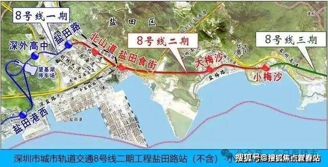 多维交通:背靠惠深沿海高速(已完成市政化改造),紧邻高速出入口,出行高效便捷。距地铁8号线小梅沙站约200米,该线路贯穿南山、福田、罗湖、盐田核心区,已于2023年贯通,站点采用国内少见的“出站即沙滩”设计,实现海与都市的零距离衔接。片区更规划直升机停机坪与码头航线,构建“海、陆、空、轨”四栖交通网络。