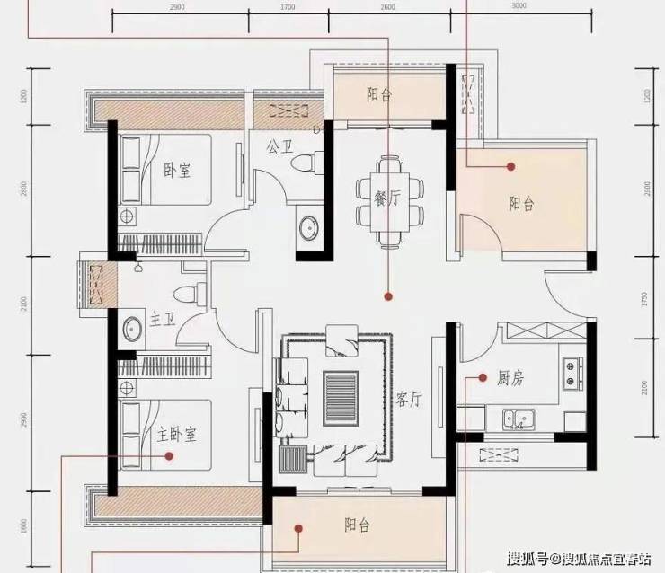 亮点:餐客厅双阳台 奢阔主卧