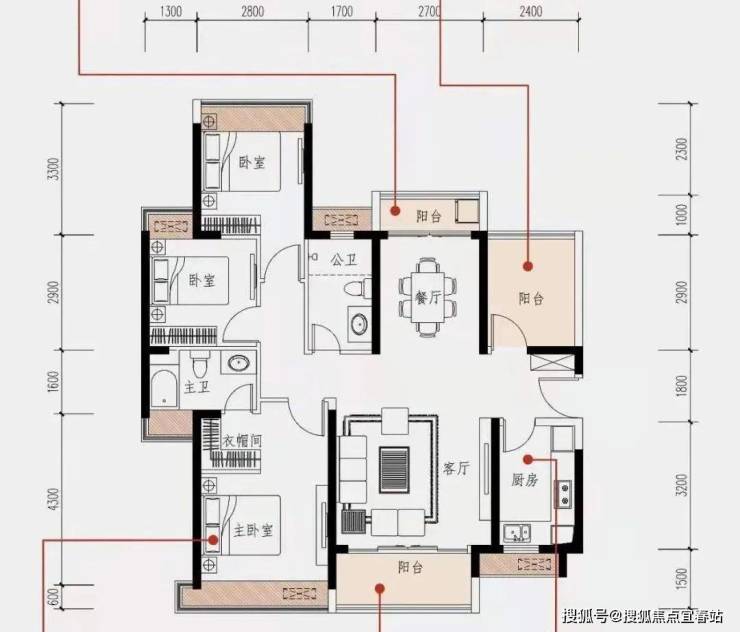 亮点:餐客厅双阳台 7米超大阳台 豪华主卧