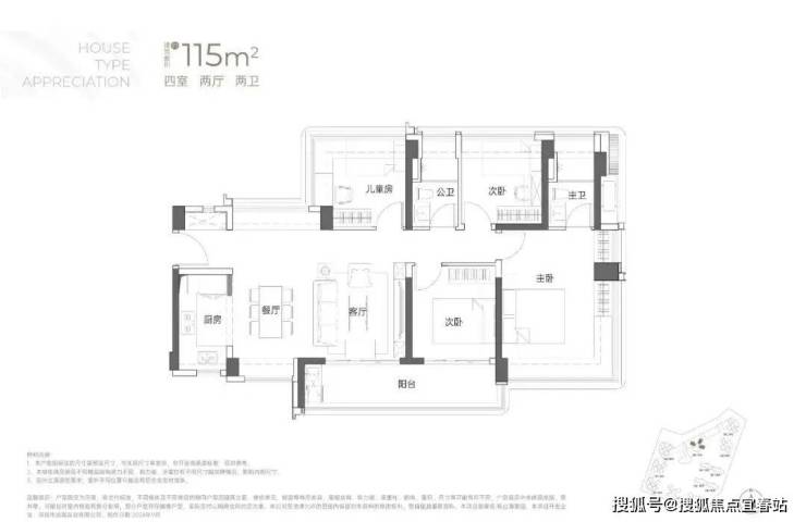 建面约115㎡4房2厅2卫