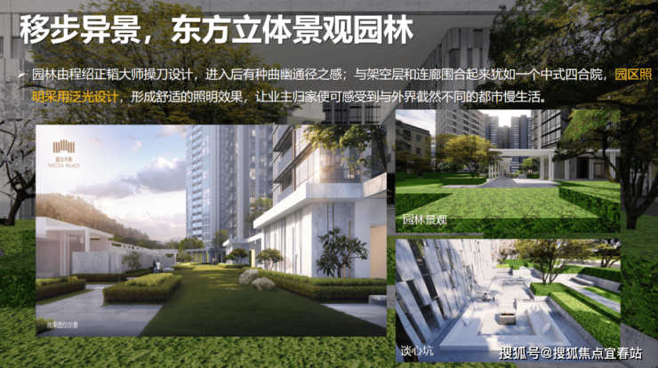 坐拥醉美中轴园林景观视野、平台水景、特色门庭、泛光照明,一步异景形成楼王私享景观