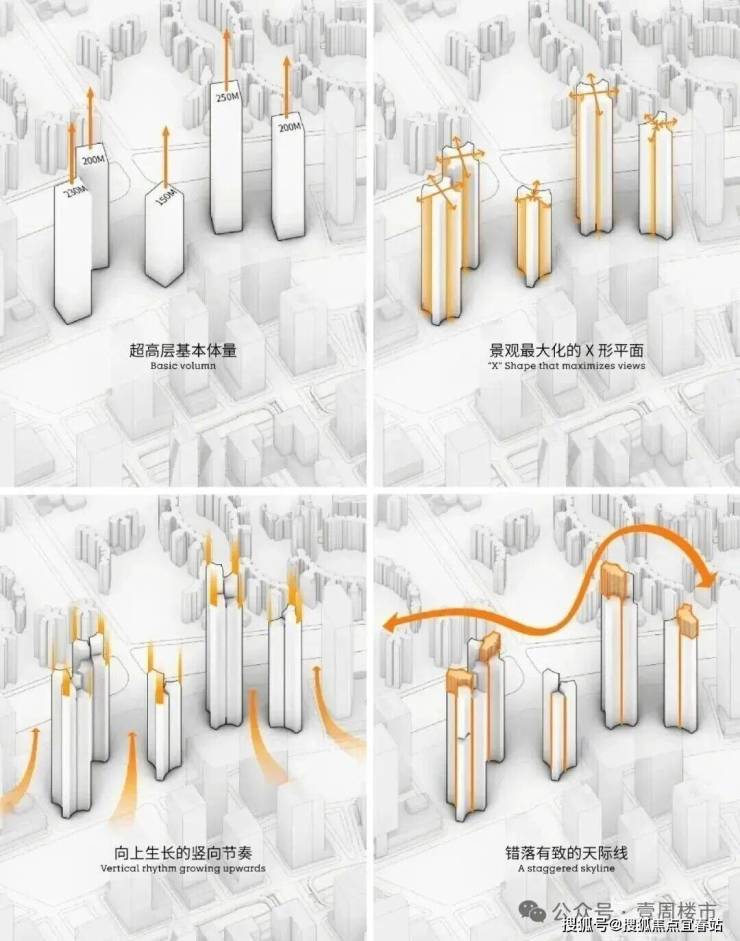 结合场地景观资源条件,团队提出一个反同质化的“X”形平面,作为住宅及公寓塔楼的平面原型。