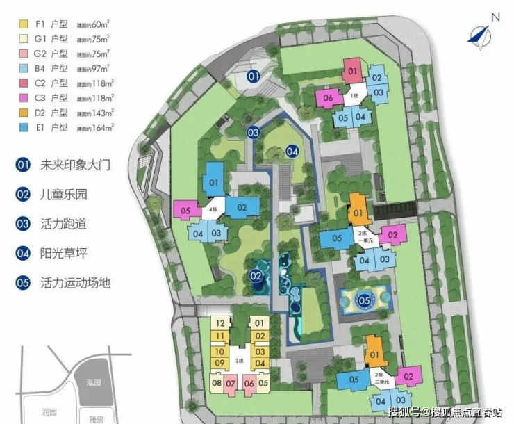 合正方洲瀚府共由6栋总高46-53层的住宅组成,其中1栋1单元/2栋1/2单元住宅47F,1栋2单元住宅46F,3栋1单元住宅53F,3栋2单元住宅52F,5栋是1所18班制幼儿园,园区内规划有多个儿童游戏场地,羽毛球场,足球场,总规划1508户,全部都是商品房,其中1栋2单元3梯5户,其它栋数都是3梯6户设计