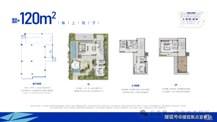 内设落日观潮台、晨曦听海廊、瑜伽草坪、乐活跑道、康养步道、景观会客厅、户外健身区等7大景观功能亮点,5重归家园林体系,筑造海湾生态公园住区。