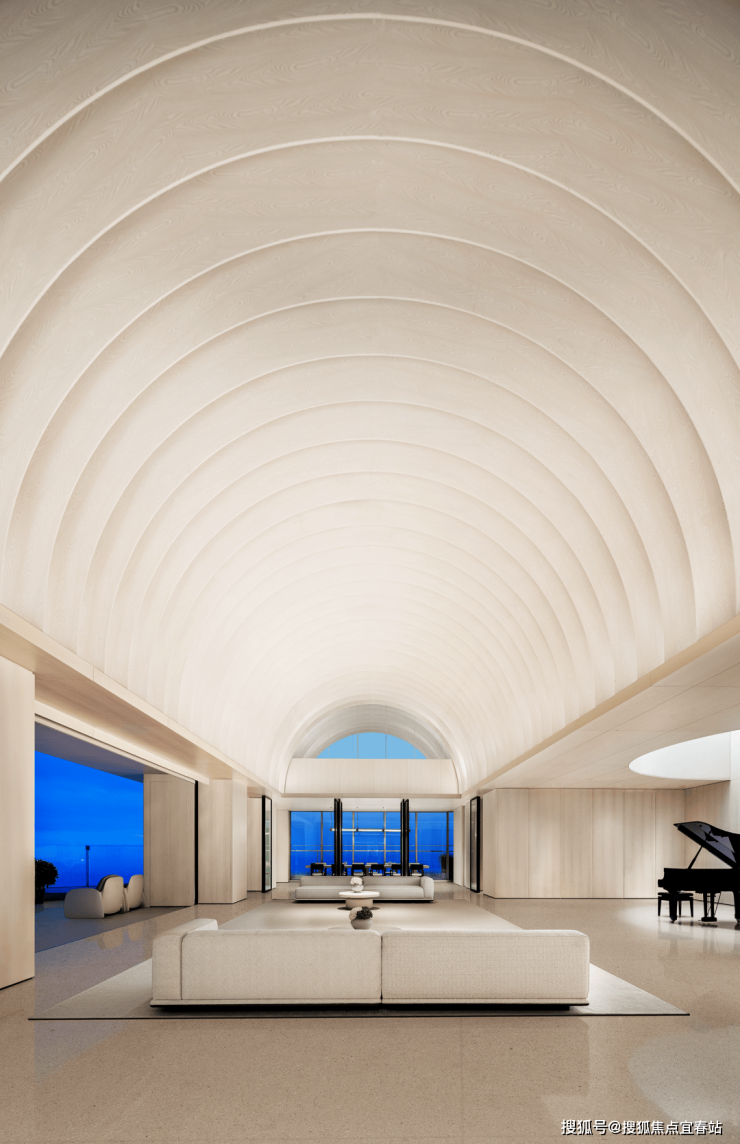 设计将光源巧妙地融入背景,使得艺术的魅力得以充分展现,如同那置于中央柔和光环下的钢琴,每一个身处此空间的人都在这样的设计下成为了舞台上的焦点。