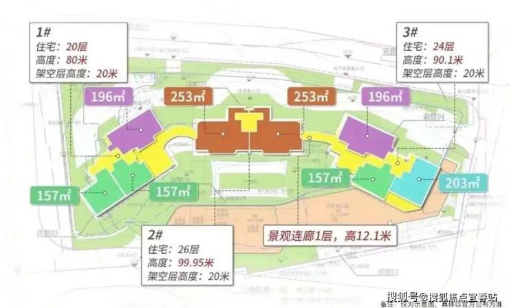中间2栋为楼王单位,26层高,两梯两户,户型全部为253平大平层,层高达到3.3米。