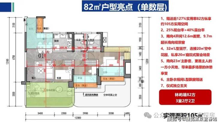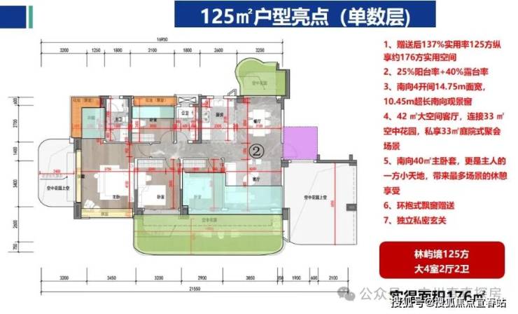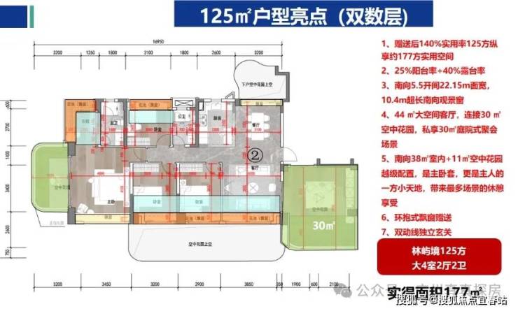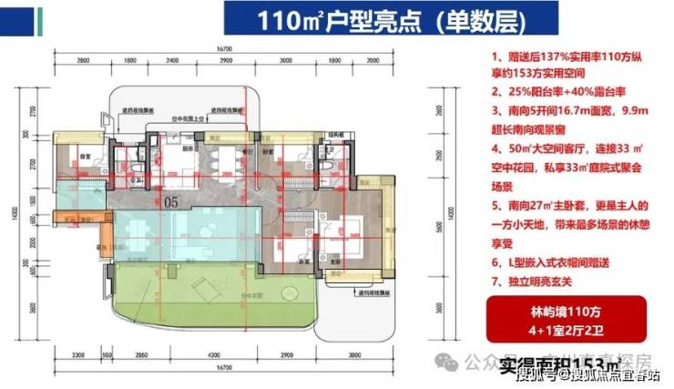 采用“大阳台”设计。而且半开敞空间水平投影面积之和占住宅套内面积的比例,由新规的20%,进一步放宽到了25%,允许阳台占比扩大到25%,叠加空中花园占比40%!110㎡做5房,赠送高达46m²,36㎡的超级大阳台是惊艳了所有人的,使用率接近140%,这是广州的住宅,划时代的一次迭代。