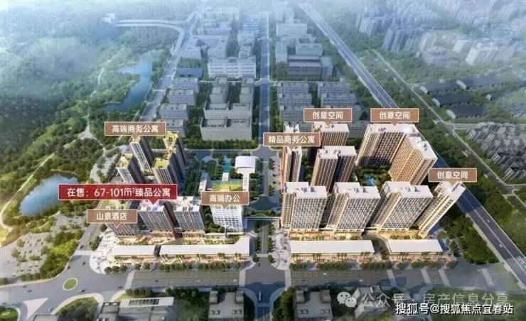 约56万㎡综合体大城,集山景酒店、高端写字楼、 旗舰商业、瞰山公寓为一体的大型城市综合体,打造凤凰山麓封面标杆
