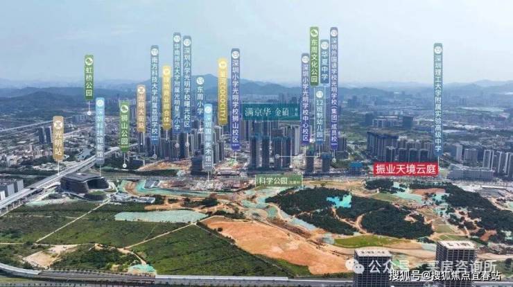 光明中心区科学公园内目前体量最大的新盘、科学公园头排的满京华狮山项目,相当值得关注。这是一个近百万方的综合体大城,集高端住宅、商业、办公于一体。