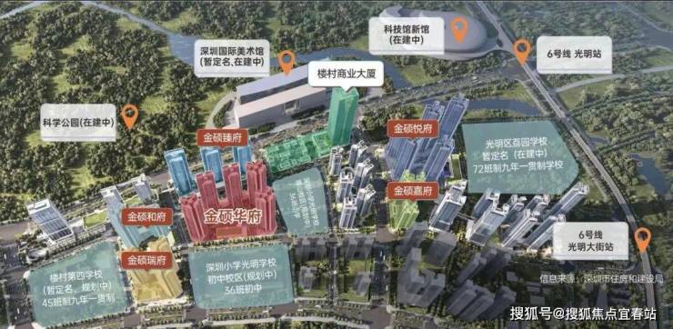 满京华金硕华府作为光明中心区科学公园板块的百万方大城首期作品,由深耕深圳27载的满京华集团开发,凭借“科学公园头排占位+地铁6号线光明站+百万方综合体配套”的核心价值,成为光明市场中兼具生态资源与大城确定性的品质改善之选。项目位于光明区光辉大道与狮山三街交汇处,地处光明中心区核心腹地,与规划面积约208万㎡的科学公园仅一路之隔,周边深圳科技馆新馆、深圳国际美术馆等城市级文化地标环绕-7-9。