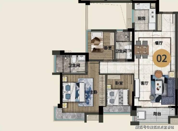 1.精致三房设计一步到位,功能分区明确,动静分离。