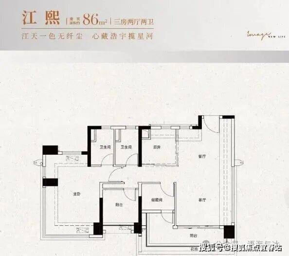 :三房设计,满足刚需家庭需求。全屋动静分离,保证休息区与活动区互不干扰。南向观景大阳台,不仅增加室内采光,还提供休闲观景空间。主卧带 270° 飘窗,拓展视野与空间感,可打造为舒适的休憩角落。