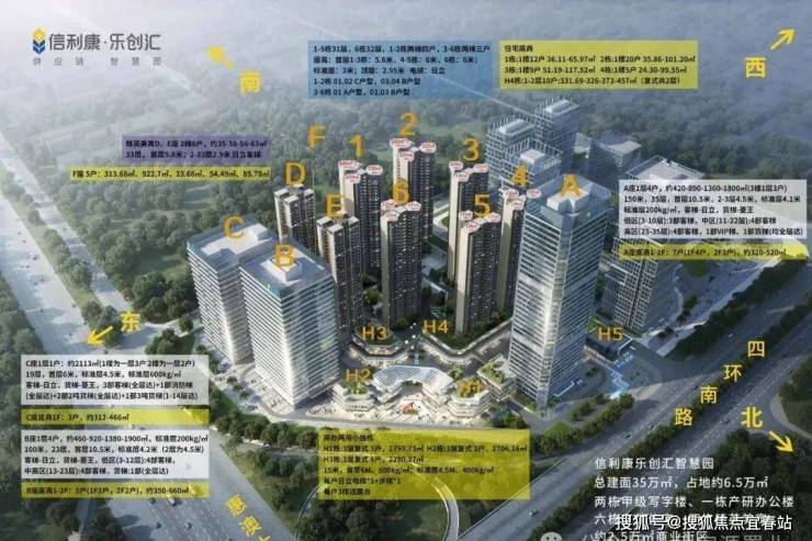 业态:2栋甲级写字楼、1栋产研办公楼、6栋高端住宅、2栋精英美寓、4个独栋和一栋联排合约3.2万m²商墅组成
