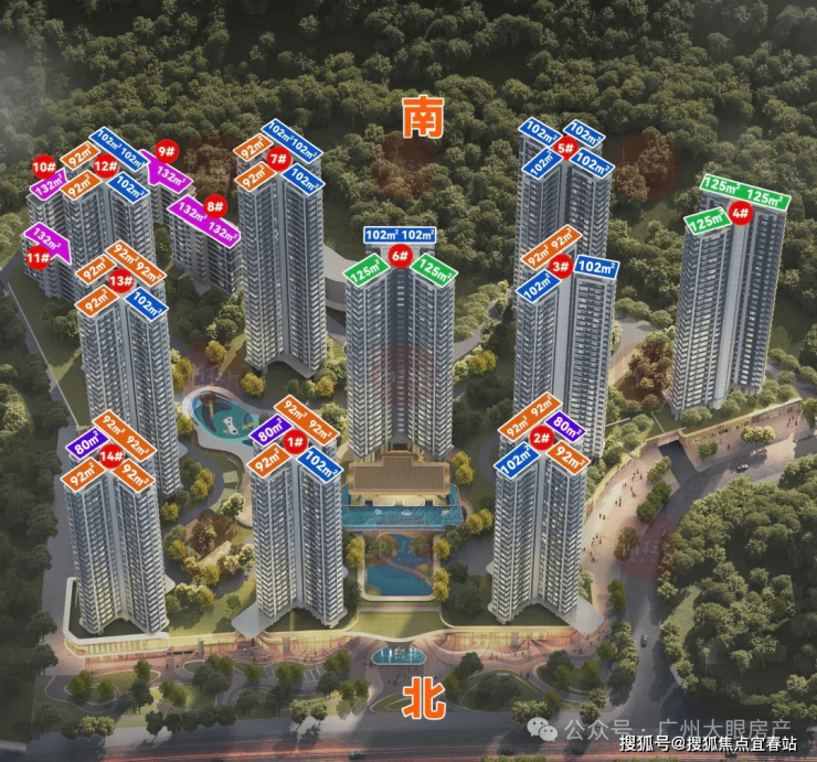 1号楼,2梯5户,26层高,全南向、超100%使用率、南向望山景、中心园林景观、会所泳池